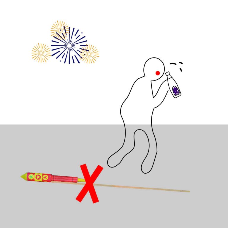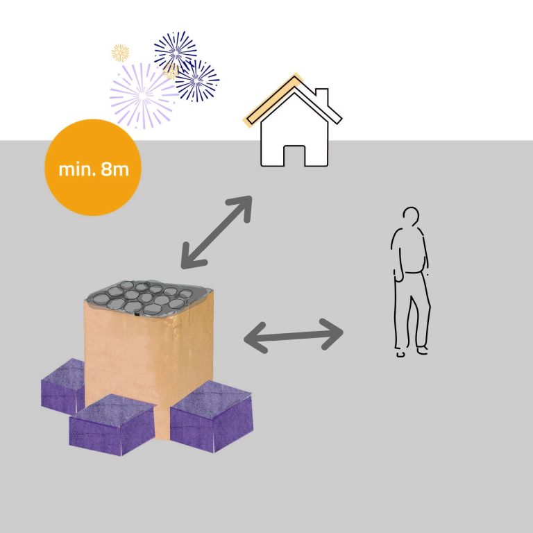 Nehmt immer auf andere Menschen und Tiere, sowie Hindernisse neben und über euren Feuerwerkskörpern rücksicht. Wenn ihr Alkohol getrunken hat, lasst die Finger vom Feuerwerk.