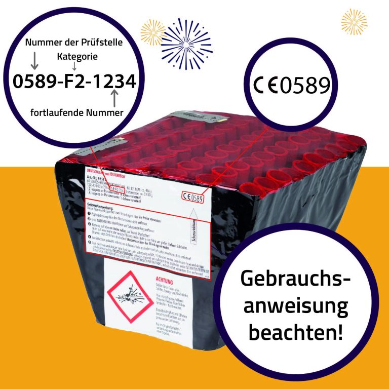 Bei Kauf sollte man schon darauf achten. Geprüftes Feuerwerk braucht eine CE oder BAM Nummer, die die Kategorie F1, F2, T1 oder P1 enthalten darf. F3, F4, P2 und T2 und PM2 sind verboten und gefährlich.