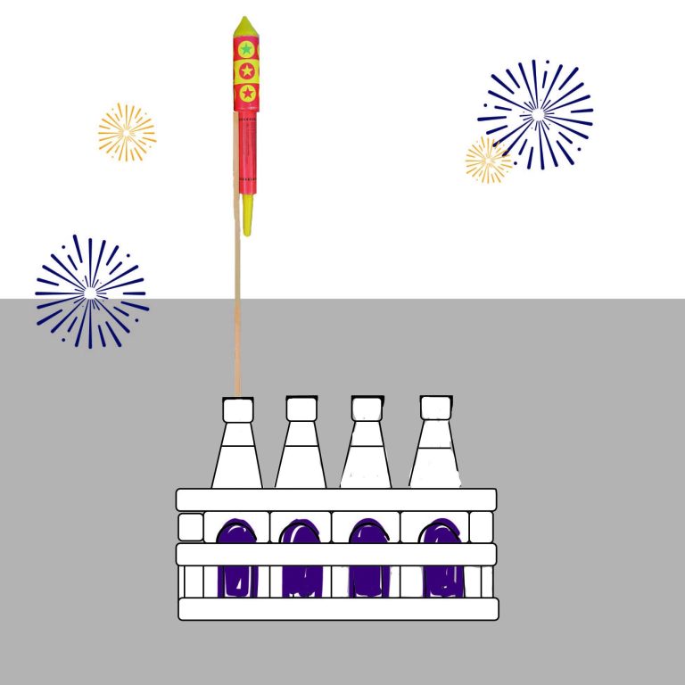 Raketen: immer in ein festes, feuerunempfindliches Gefäß stellen und gerade nach oben ausrichten. Niemals einzeln stehende Flaschen verwenden, da diese durch das Gewicht der Rakete umkippen können. Am besten sind ganze Getränkekästen geeignet. Im Internet gibt es auch genug Anleitungen, wie man sich aus einem Holzbock einen Raketenständer baut. Ein Rohr in den Boden rammen geht auch, sofern man Erdboden zur Verfügung hat. Manche Hersteller legen sogar ein Rohr bei.